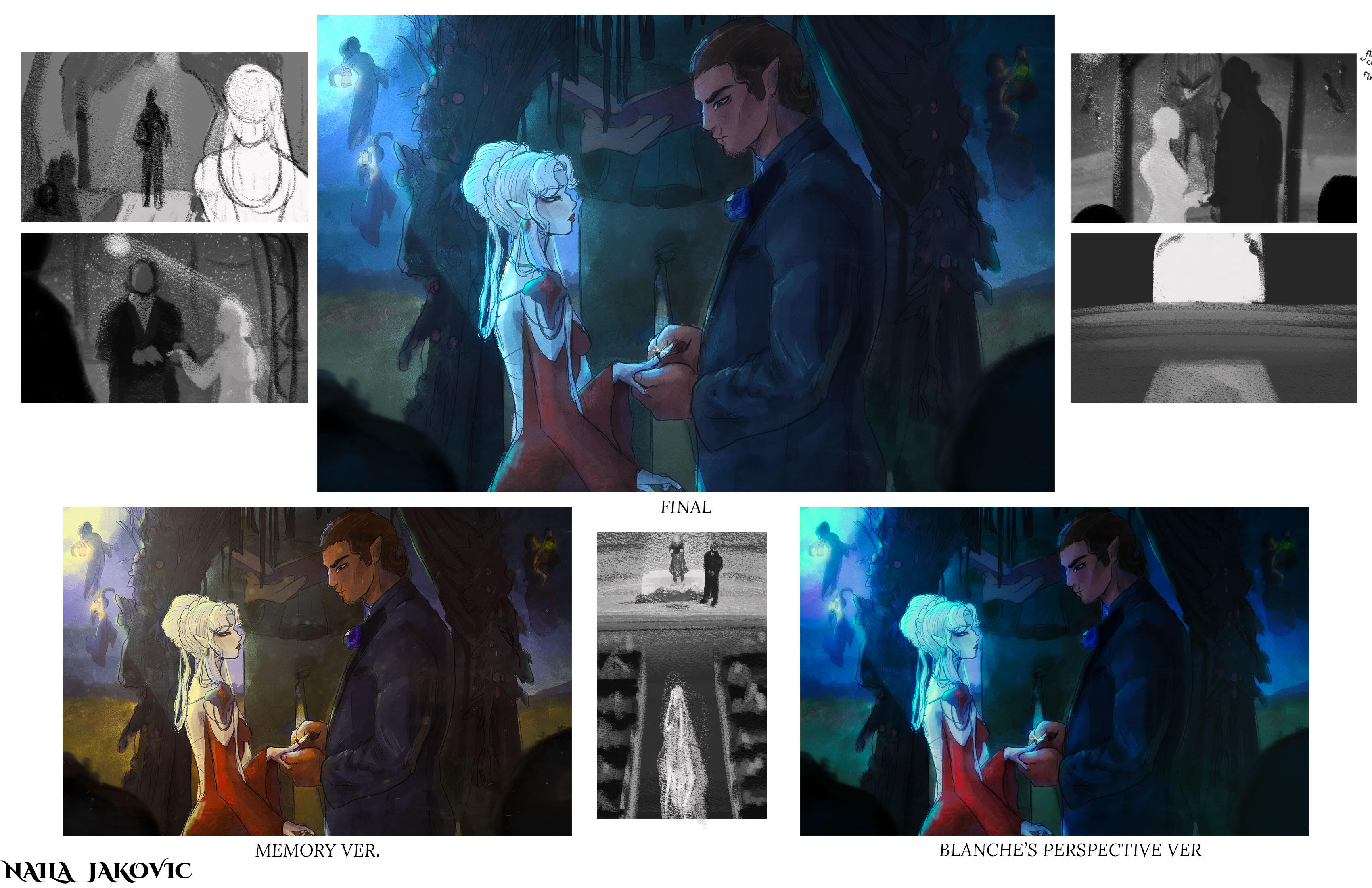 “Evening Entertainment” captures a brief look at the nightly dynamic between Blanche Athanasia and her darling husband, Romano Valentino. Short, tense, and anything but sweet, it is their first time seen in motion.