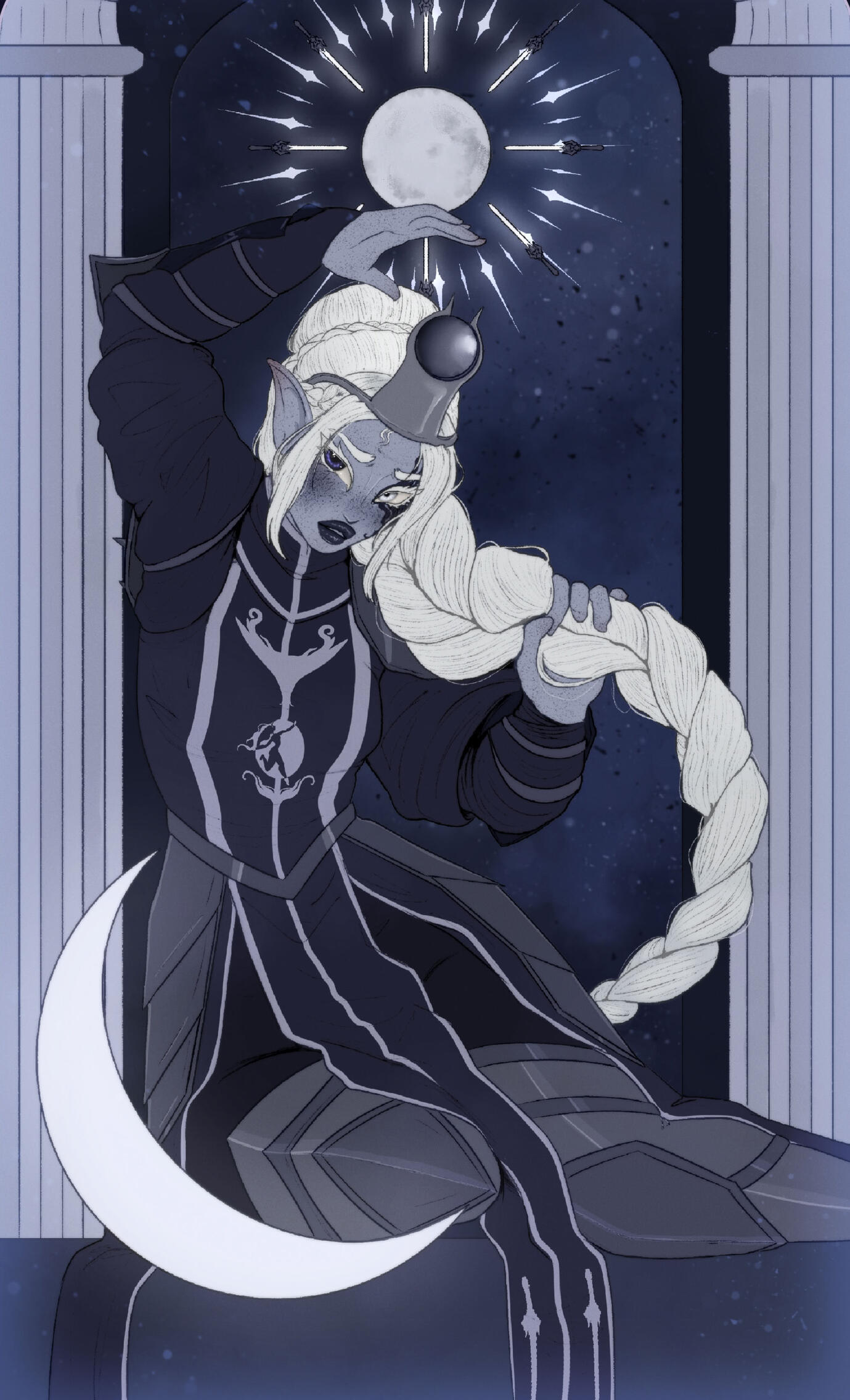 While developing Fates Drawn by Her, I had the privilege of communicating with several women who helped shape the early days of TTRPG fantasy. As a child, I rarely saw reflections of myself in the spaces I loved, and discovering these women later felt like uncovering something that had always been missing. I felt such profound sadness in how their contributions are often overlooked, in how I had to search, piece by piece, to find their work and their stories; but that absence only deepened their impact on me. Being able to speak with them during this project felt both surreal and fulfilling, bridging the gap between who I was then and who I am becoming.In this project, I focused on emotional depth, narrative symbolism, and the female gaze within each character. Some of these characters have been with me for years, while others are much newer; some shaped through long campaigns, others through only a few months of play. Across all of them, the threads of my experiences as a woman are present, even subconsciously, influencing both their design and their stories.Presenting these deeply personal characters as tarot cards - each reflecting both traditional meanings and their internal struggles - became a deeply healing process. This project allowed me to move beyond using fantasy as pure escapism, instead treating it as a lens through which to explore identity, agency, and the kind of representation I once searched for.